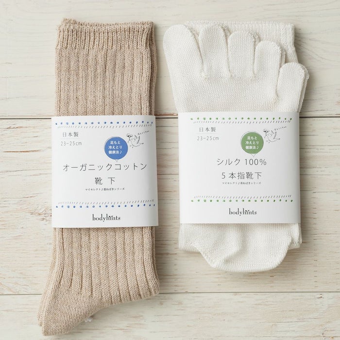 シルク100%5本指靴下とオーガニックコットン先丸靴下の2枚重ねのセット 日本製