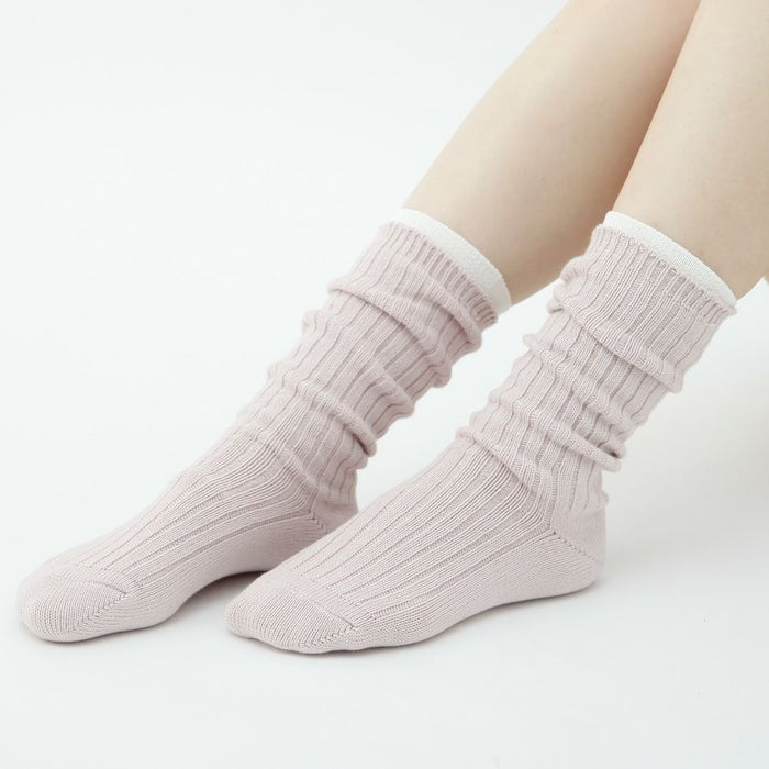 オーガニックコットン太リブ編み地。見た目は細いですが、しっかり横に伸びて+かかと付でフィット感もさらにUPしました♪太目の糸を使いふっくら編み上げています。