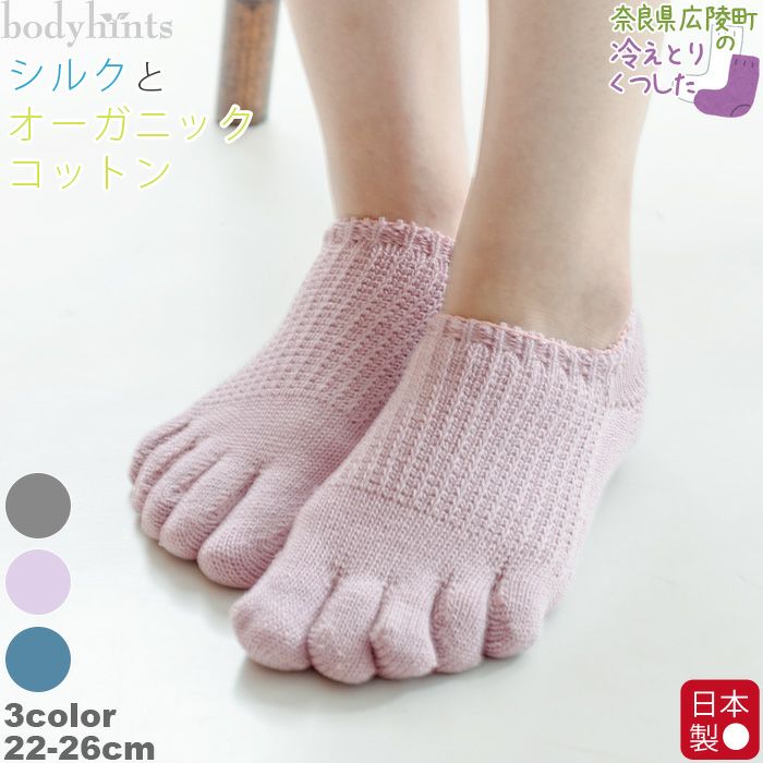 内側シルク 表側オーガニックコットン スニーカーソックス 5本指 日本製