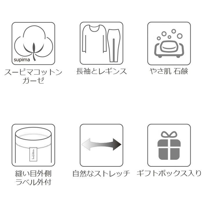 他の画像を見る スキンケアギフトセット 綿100% 長袖インナー 10分丈レギンス やさ肌石鹸 (ギフトボックスラッピング付) 日本製 送料無料 販売価格 ¥ 7,700 税込 在庫切れ カートに入れる お気に入りに登録する 在庫限り