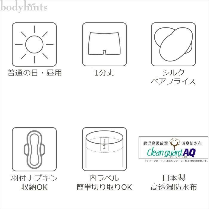 他の画像を見る シルクベアフライス サニタリーショーツ 昼用 1分丈 羽根つき対応 日本製 生理用パンツ 販売価格 ¥ 4,400 税込 カートに入れる お気に入りに登録する シルク レギュラーウイング対応 在庫限り