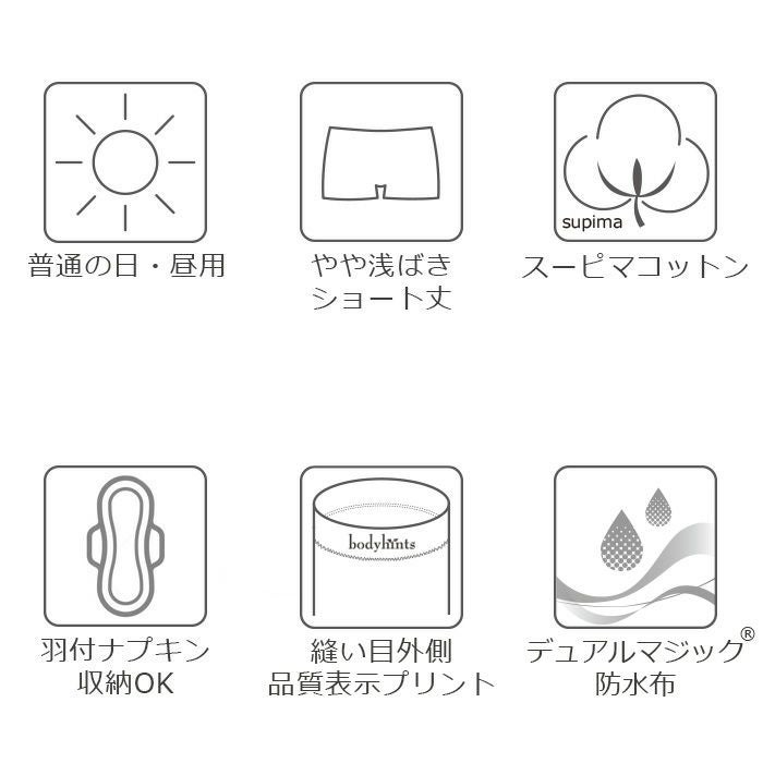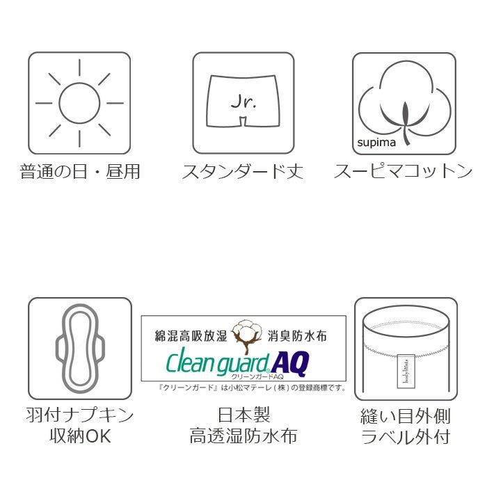 他の画像を見る スーピマコットン デイリーサニタリーショーツ 昼用 ショート丈 羽根つき対応 日本製 販売価格 ¥ 1,870 税込 カートに入れる お気に入りに登録する コットン レギュラーウイング対応
