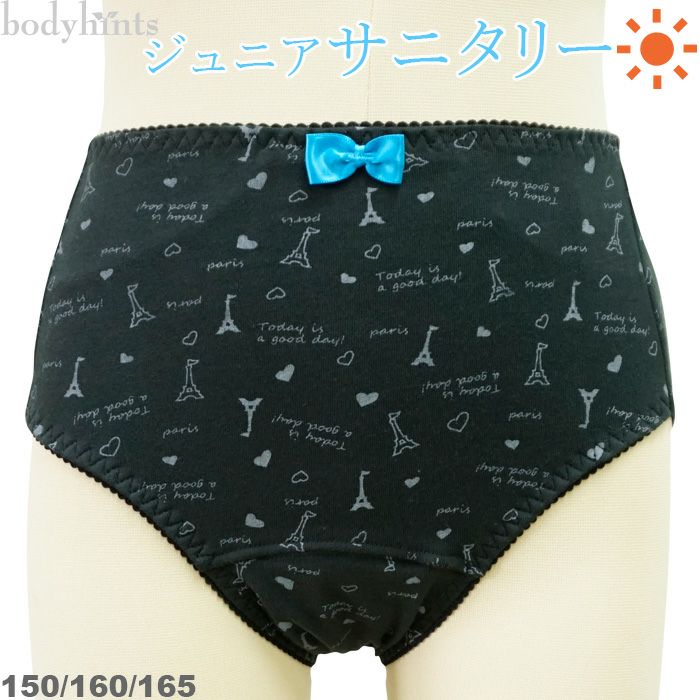昼用 ジュニアサニタリーショーツ エッフェル柄 おなかポケット付 羽根つき対応 女児用 生理用パンツ