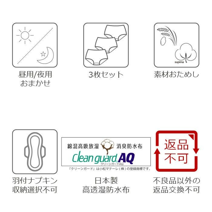 肌にやさしい天然繊維のサニタリーショーツ おためし3枚セット 日本製 送料無料