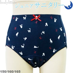 夜用 ジュニアサニタリーショーツ ネコリボン柄 羽根つき対応 女児用 生理用パンツのレビュー